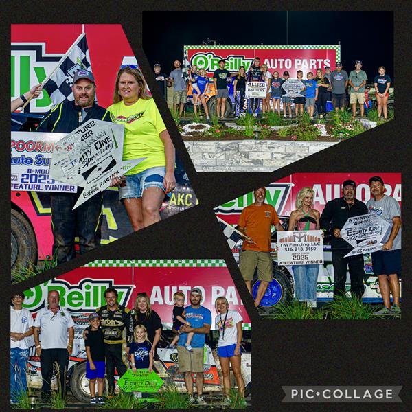 *We started off with the Poorman Auto Supply USRA B-Mods. From the start, first-time visitor this season Jake Richards looked smooth and fast as he bolted to the front from the 3rd starting spot and stayed out front as the rest of the field battled side by side every lap. He was being chased by Tyler Kidwell, Travis Johnson, and K.C. Mullin, and after those 3 drivers, it was Josh Lanterman in the mix. Every spot was tightly contested and came down to the last lap. Jake Richards held the trophy, winning the A-Maaaaiiiinnnn!! Kidwell runner-up, LPR’s Josh Lanterman snuck in for 3rd, Travis Johnson 4th, and K.C. Mullin rounding out the top 5.