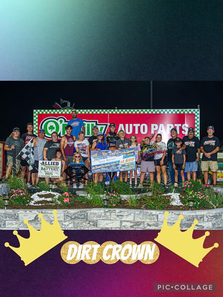 *Crown Him: The Main Event was the Allied Battery stock cars racing along the Dirt Crown series sponsored by the aforementioned TM Fencing LLC. The racing surface was fast and showed to have multiple lanes of racing from the drop of the green! The night provided some of the best racing all season, and the field was stacked with wily old veterans and fast youngsters alike. Racing two and three wide all around the track provided the fans with an eyeful of action to keep up with. 6th starting Jayce Reimer wasted zero time testing the top groove and bolted around the field, nabbing the top spot on lap three. The pole sitter, Clint Smith, was locked into battle within the top 8 all night, but the spots were not easy to gain as John Allen, Brian Franz, and Hard Charging Beau Davis were finding their way to the front. Angel Munoz made his presence felt consistently, battling in the top 5. The battle for the top spot was epic as Brent Fielder challenged Reimer lap after lap, and as they made it to lap traffic, Fielder made his move but made contact with a lap car that spun and “flat stanley’d” John Allen, ending his charge through the field early. Jayce retook the top spot and darted back to the lead with 6 laps remaining. Fielder sent it in turn 3, trying anything he could to get the win, but missed the cushion, slamming the wall and ending his night. Now with 4 laps remaining in single-file format, Jayce parked it in victory lane while Beau Davis went up 18 spots for 2nd, Angel Muñoz 3rd, HOF-amer Brian Franz 4th, and Big Race Clint Smith 5th. Wow, what a race!!