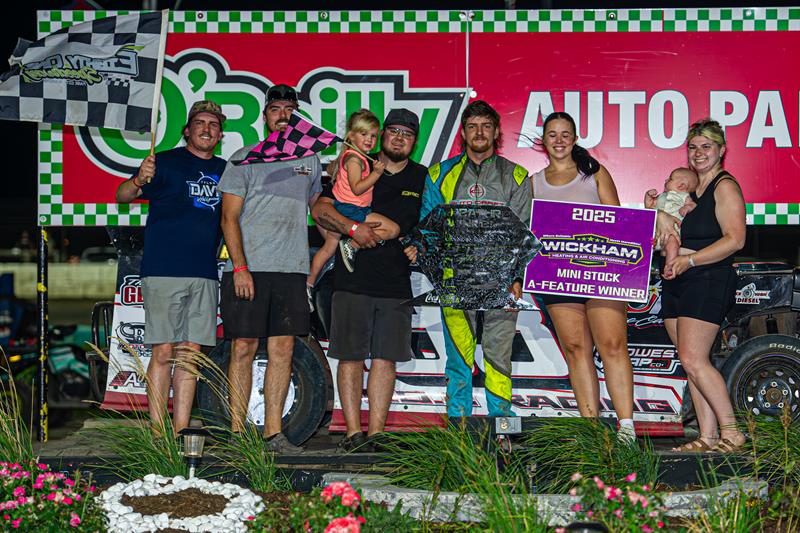 *Double Down: Up next was the Wickham Heating and Air Conditioning Mini stocks. You had to be there, but over at the Hummer on Friday the 33rd of Karson Keeler, who to this point barely made it 10 laps in a row all year as he was battling the gremlins, finally put it all together and in amazing fashion on a last-lap last-corner pass pulled off his first victory in the class at the Freedom 50 (laps), taking the $500 along with it. The Double came to him, winning his second night in a row as he battled with the Justin Esparza car and Korey Bice, who both lost the handle briefly each spinning, and Kaaaaaarrrrson Keeler went on to victory lane. Dane Headrick 2nd, the veteran Ken Hapy 3rd, and Dakota Longpine 4th.