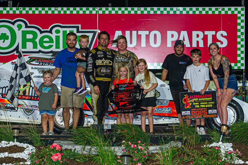 *BOM 2 step: Alternative Pest Management USRA Mods were the night cap. This week we’re selected for the 2 Twisted Productions Bat Race Redraw. Watching Tyler Davis get out to a dizzy lead only to be clipped at the line by Tad Davis to nab the pole. At the drop of the green flag outside row starting Hollywood, Tyler Davis found the front, but it wouldn’t take long for Paden Phillips to take his shot and drive hard into turns 3-4 getting to the inside but it wouldn’t hold up as he slipped back and battled with Tad Davis and Dan Powers for a top 5 spot. With the track starting to fade away, it was Tad Davis battling with Tyler Davis until lap 15 when the fastest car on the speedway was the 4 of Dan Powers. Dan got around Tad but showed his hand a bit too early allowing Tyler Davis to change up his entry to block Dan but still handed BOM (Black Out Motorsports) 2 steps into victory lane finishing 1st and 2nd. 3rd would be Ryan McAninch, 4th to Justin Franz and the always consistent Kirby Robe rounding out the top 5 on the night.
