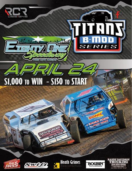 B-Mod competitors, to avoid any confusion we want to clarify some early questions about this weekends event. The B-Mod portion of the races on Saturday, April 24th are a Titans B-Mod Series ran event, not an 81 Speedway led event (much like USMTS officials run the A-Mod portion of an event when they are at 81). Titans B-Mod series officials will be in charge of scoring/payouts for the evening! The following are notes you need to know for this event ---
